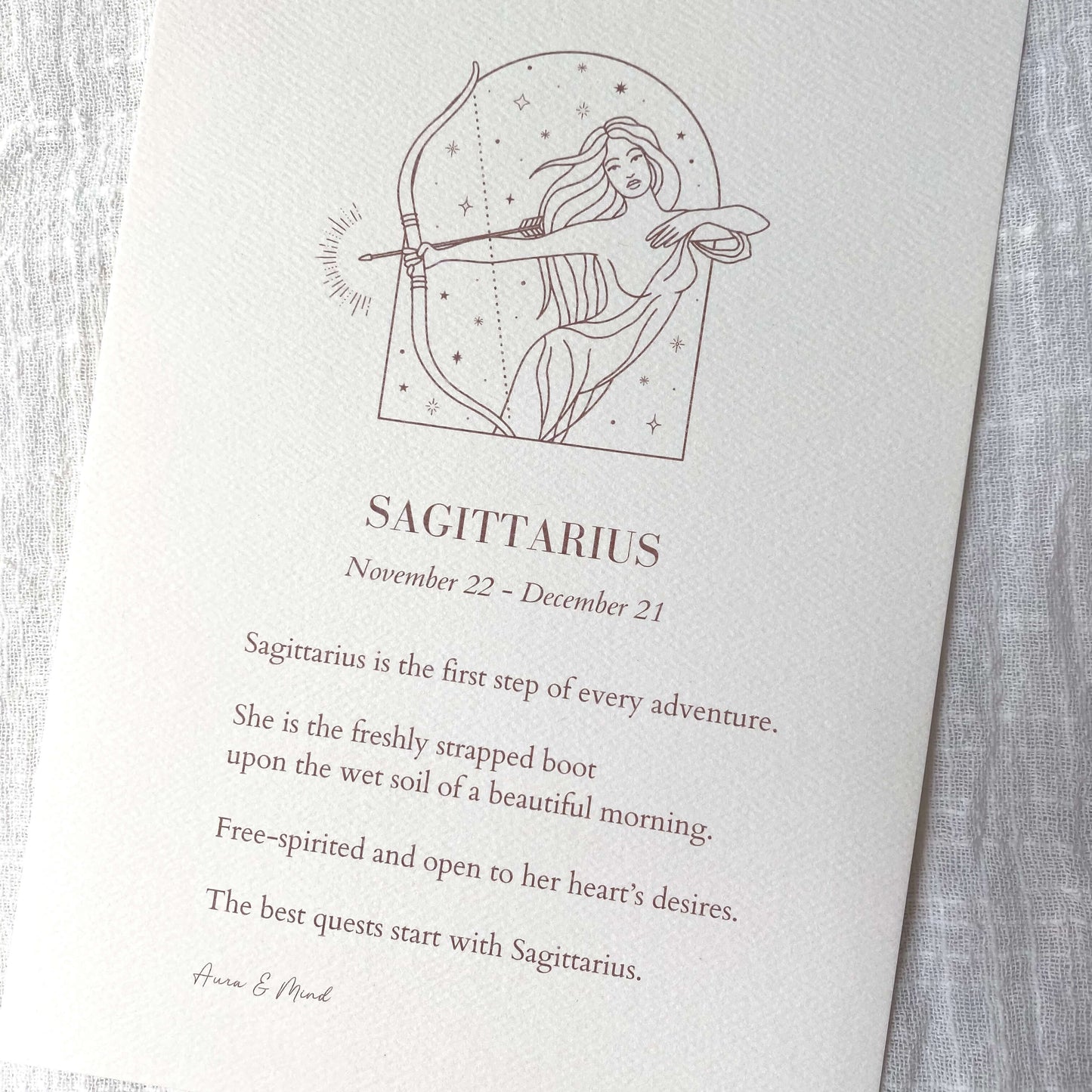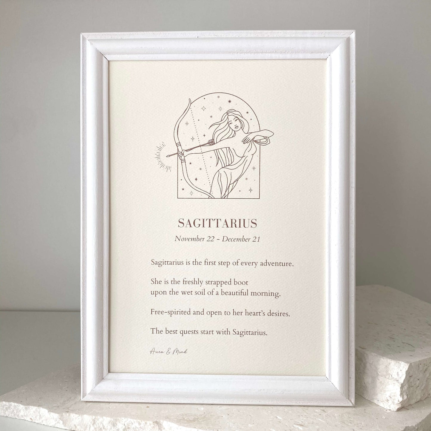 Exclusive zodiac prints by Aura & Mind features illustration and original poems of the twelve star signs.